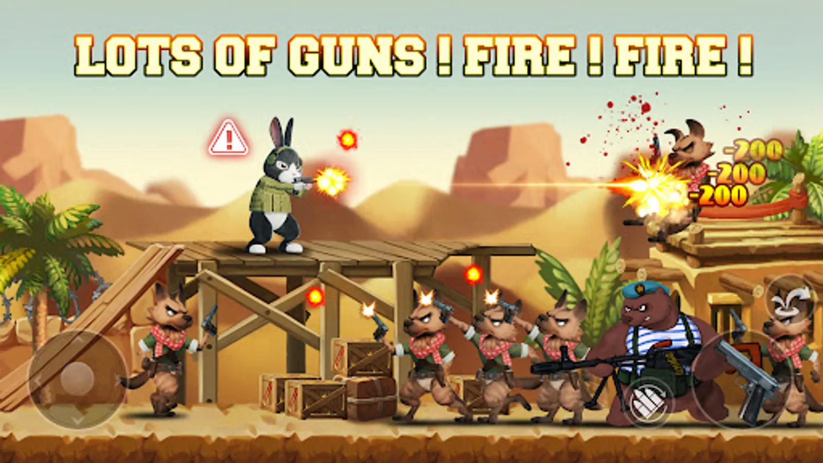 Your comrades have been taken hostage by the evil animal forces! Will you answer the call and fulfill your duty to rescue your furry friends? As a mercenary, traverse across a diverse set of locales, including deserts, forests, and more and bring the fight to the enemy army. Acquire new types of weapons and equipment (which are based on real-world armament) and unlock a host of different characters to play as, each with their own perks and abilities! Level up and gain a variety of useful skills to customize your character in a way that best suits your playstyle! The enemy won’t just take your incursions lying down, however; you’ll need to be well prepared to bring down the terrifyingly powerful BOSSES!