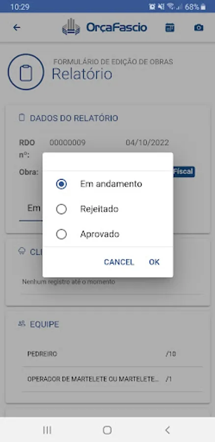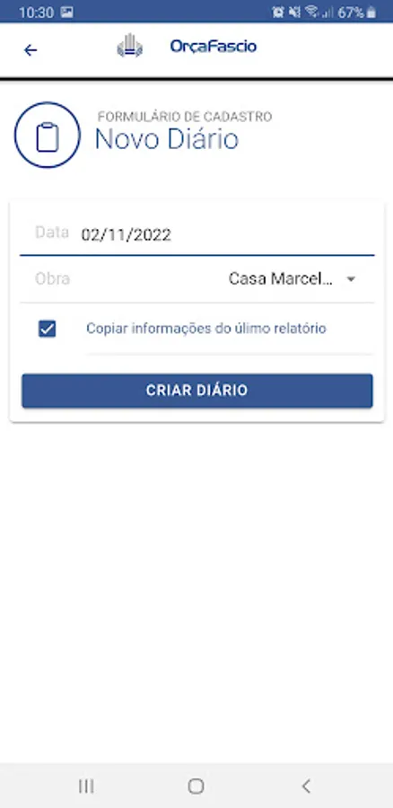 To use the application it is necessary to subscribe to the OrçaFascio daily work plan or be in the module's trial period.