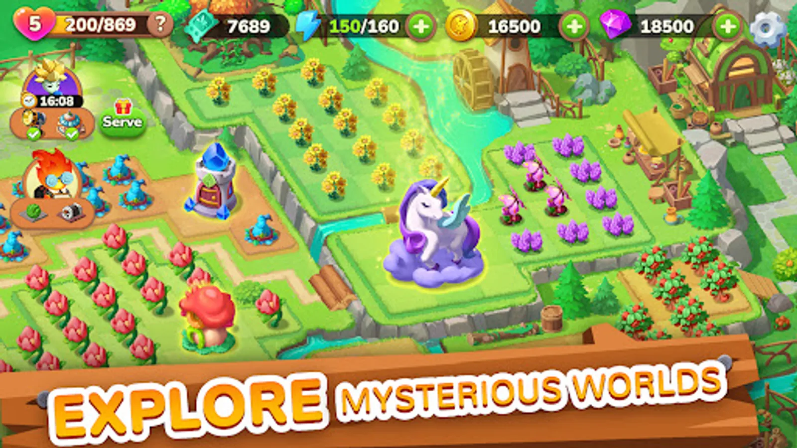 Merge identical items! Lift the curse of Dark Plants and restore the beautiful views! You will arrive in a whole new area, find new items and play fun games to merge and create Magic items, then you will open up more New Lands!