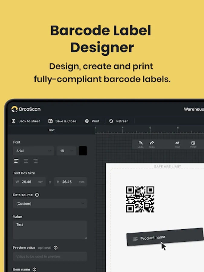 • Design and print barcode labels with an intuitive label designer