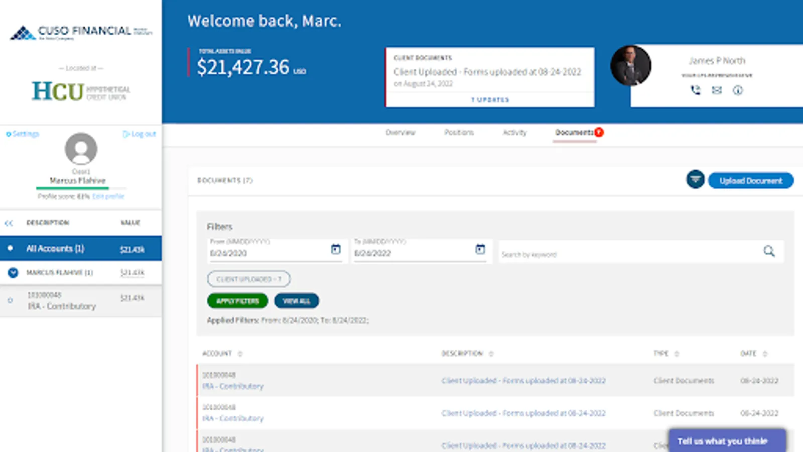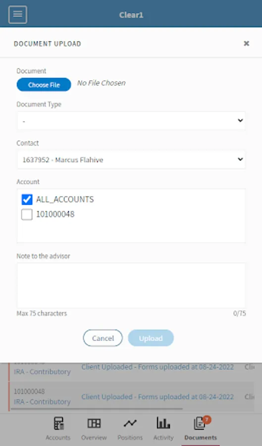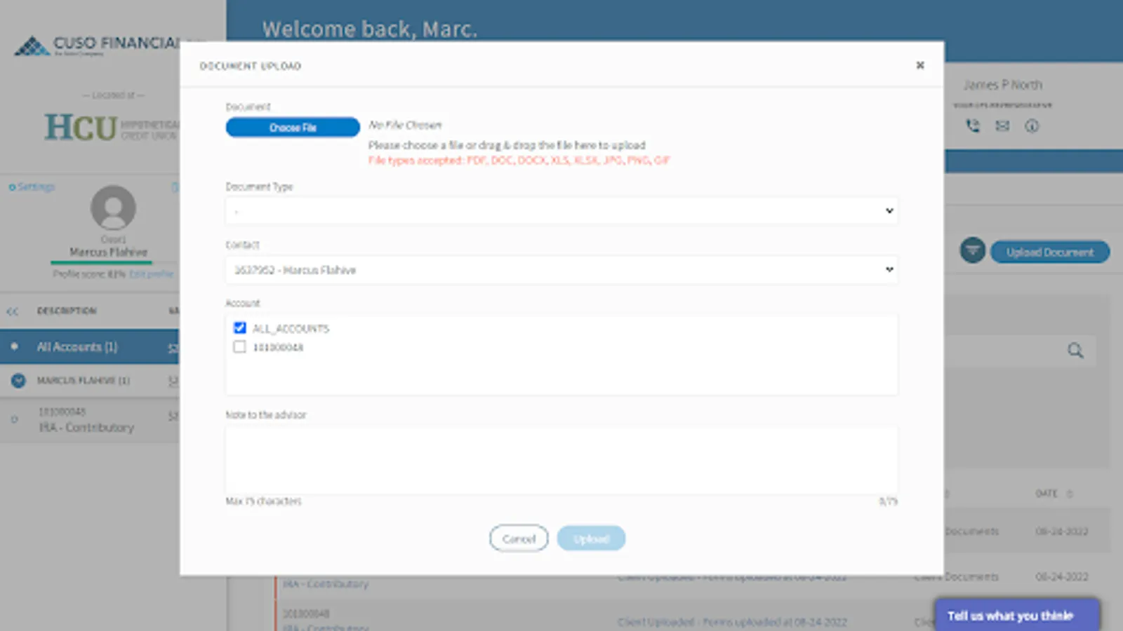 - Securely upload a financial document which will notify your financial professional its available to access!