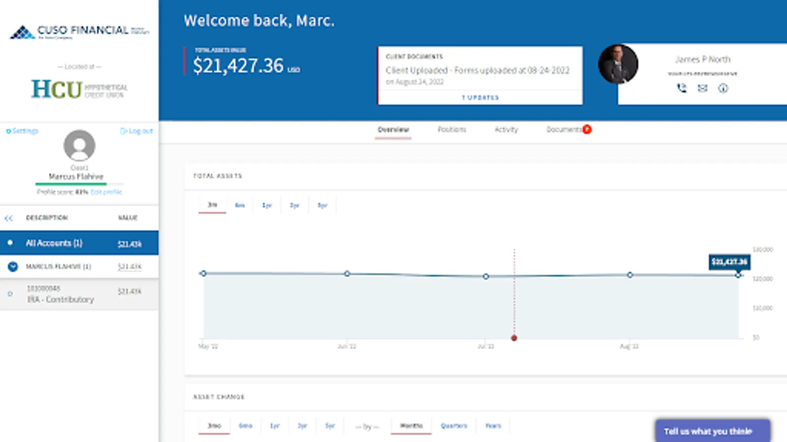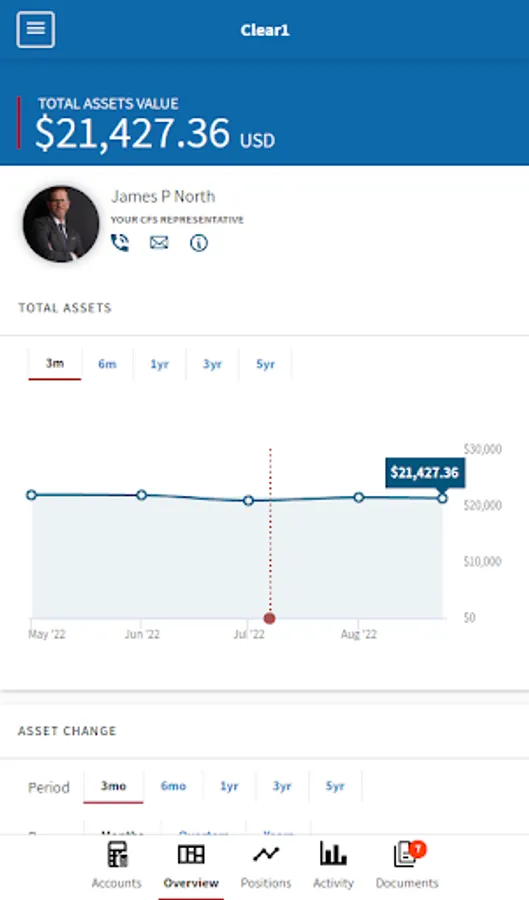 - View the factors driving change in the Asset Change chart, summarizing your Dividends / Interest, Net Contributions, Market Change, Fees and Net Withdrawals. See the % change over select periods.