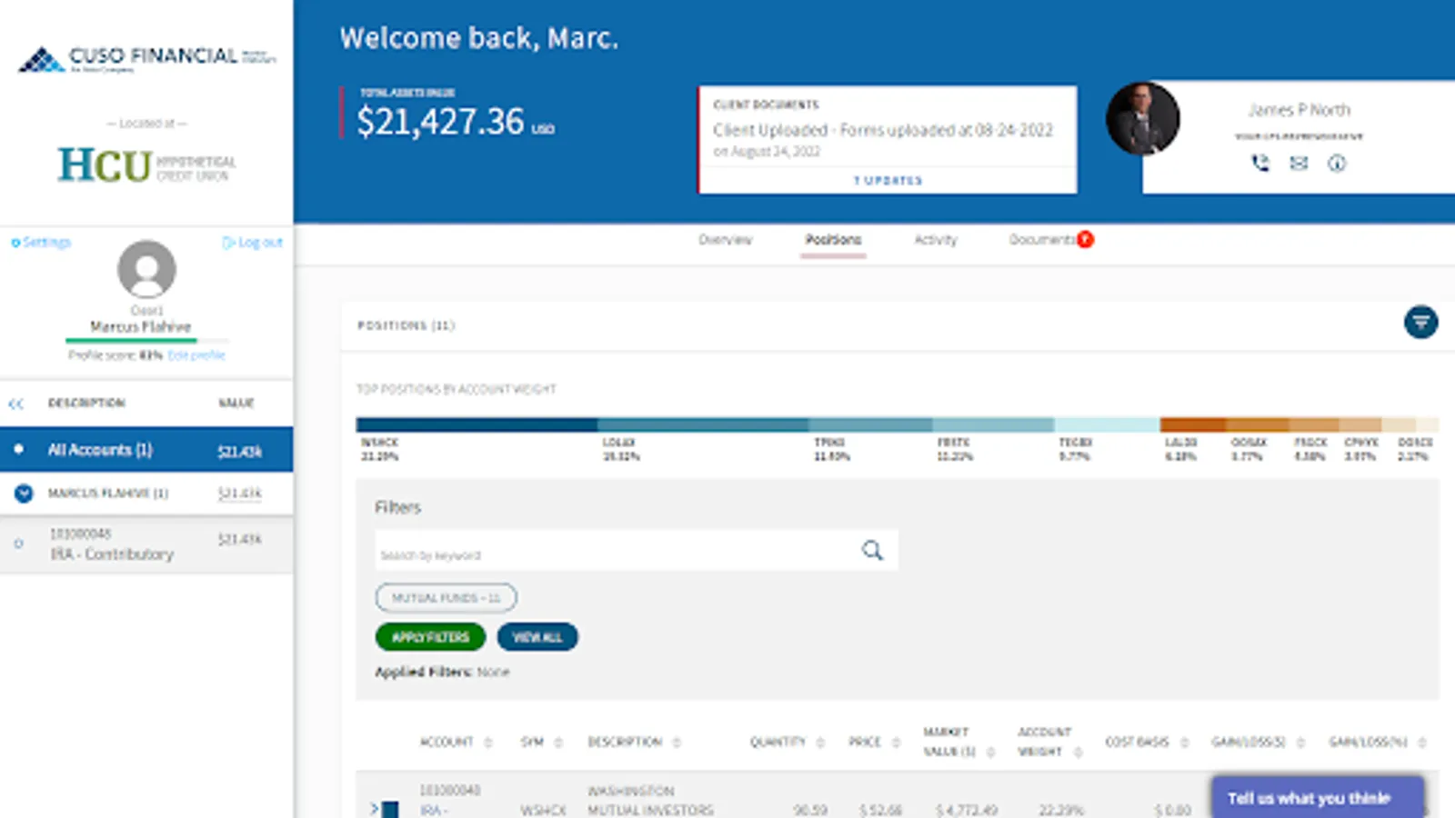 - View your stocks, mutual funds, ETFs, annuities, insurance, money market vehicles and more!