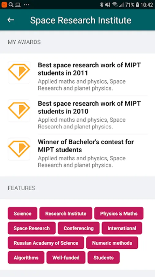 - The third screen shows my profile - some info about me and contacts, as well as source code.