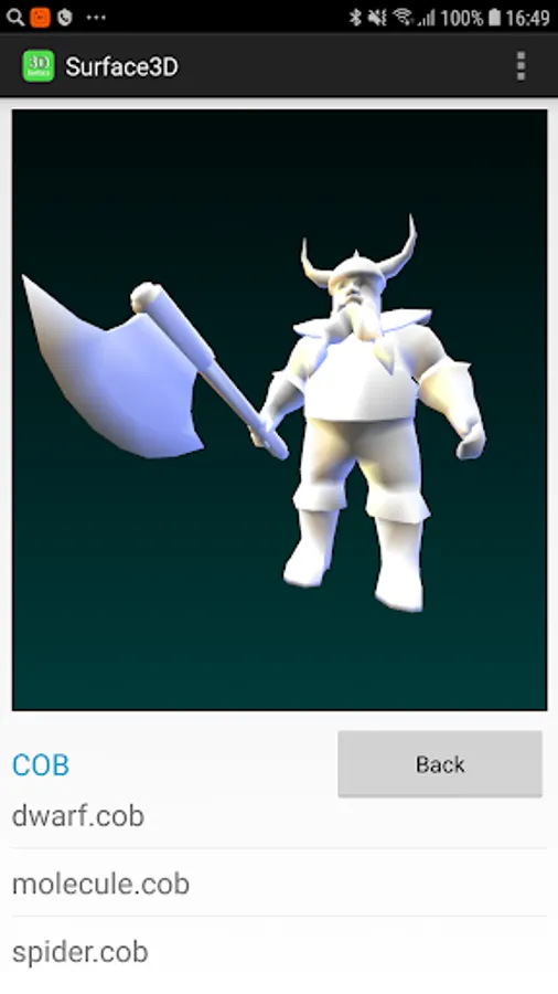 Shows 3D shapers of various formats. Use gestures to rotate or zoom the shape. Switch between mesh, wireframe or point cloud representation. Textures in PNG and JPEG are also supported. Upload your own shape from a local file!