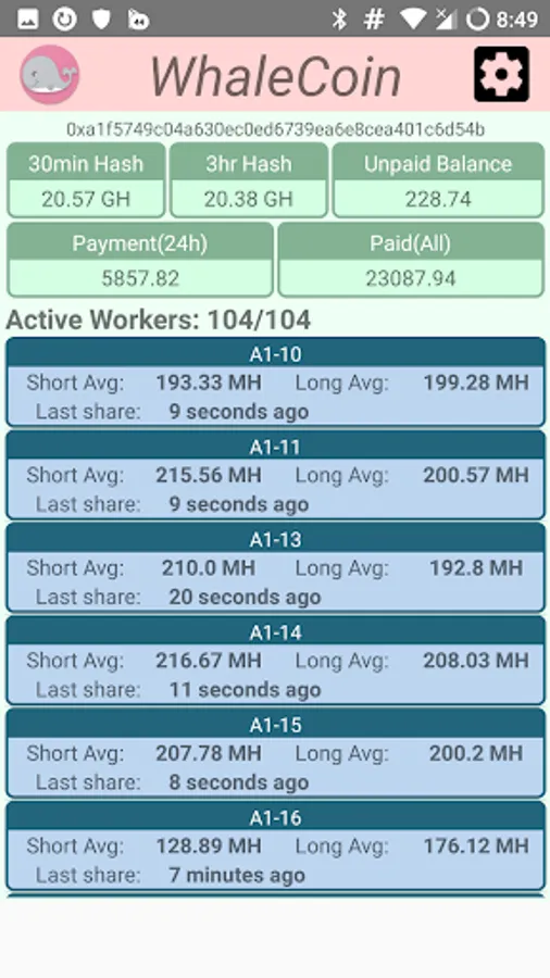 Every 15 minutes, all the wallets in your list will be checked for any worker that didn’t send any share in the past 15 minutes.