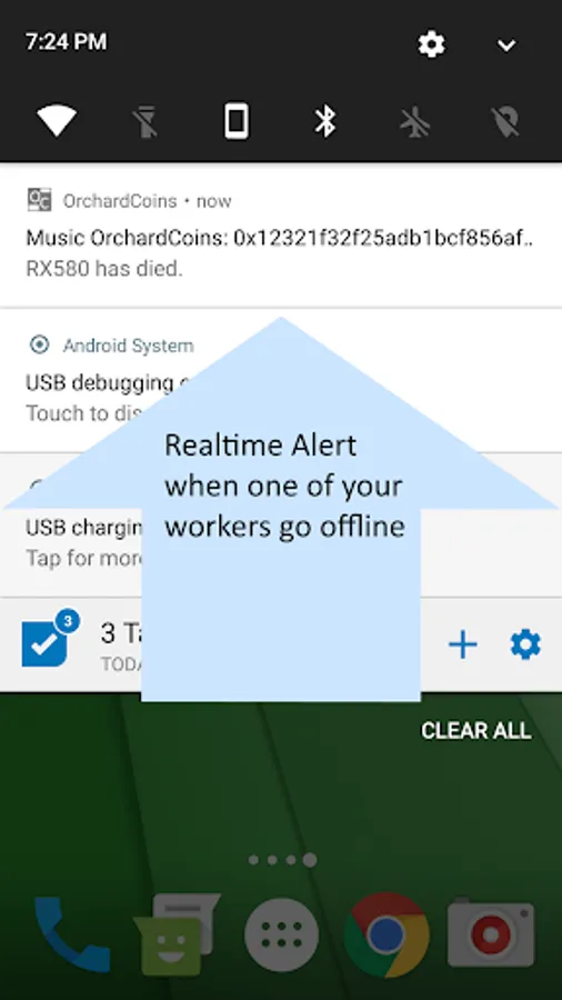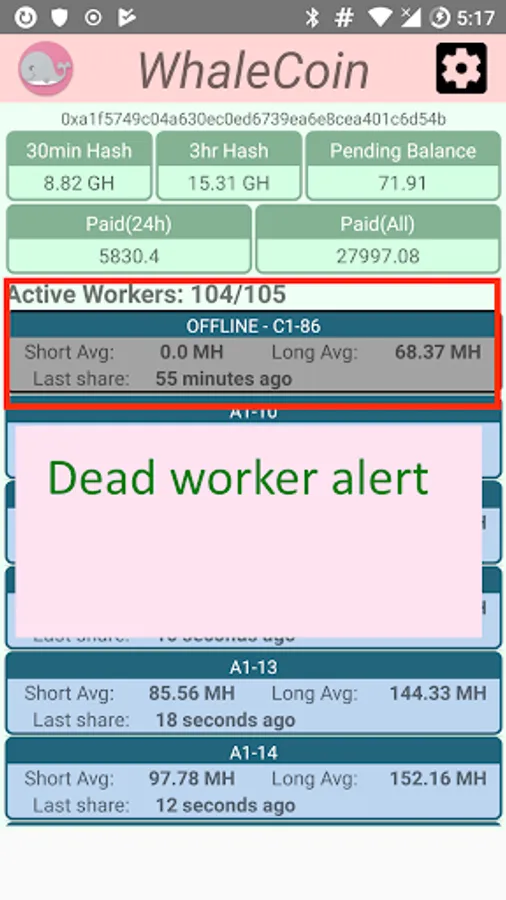 You will get a background alert indicating the worker name/address/coin. If you click the alert, you will be taken to the worker list where all the inactive workers are highlighted on top.