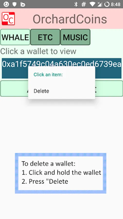 In the main page where you choose a wallet, click and hold the wallet you want to delete to open the popup menu and then press delete.