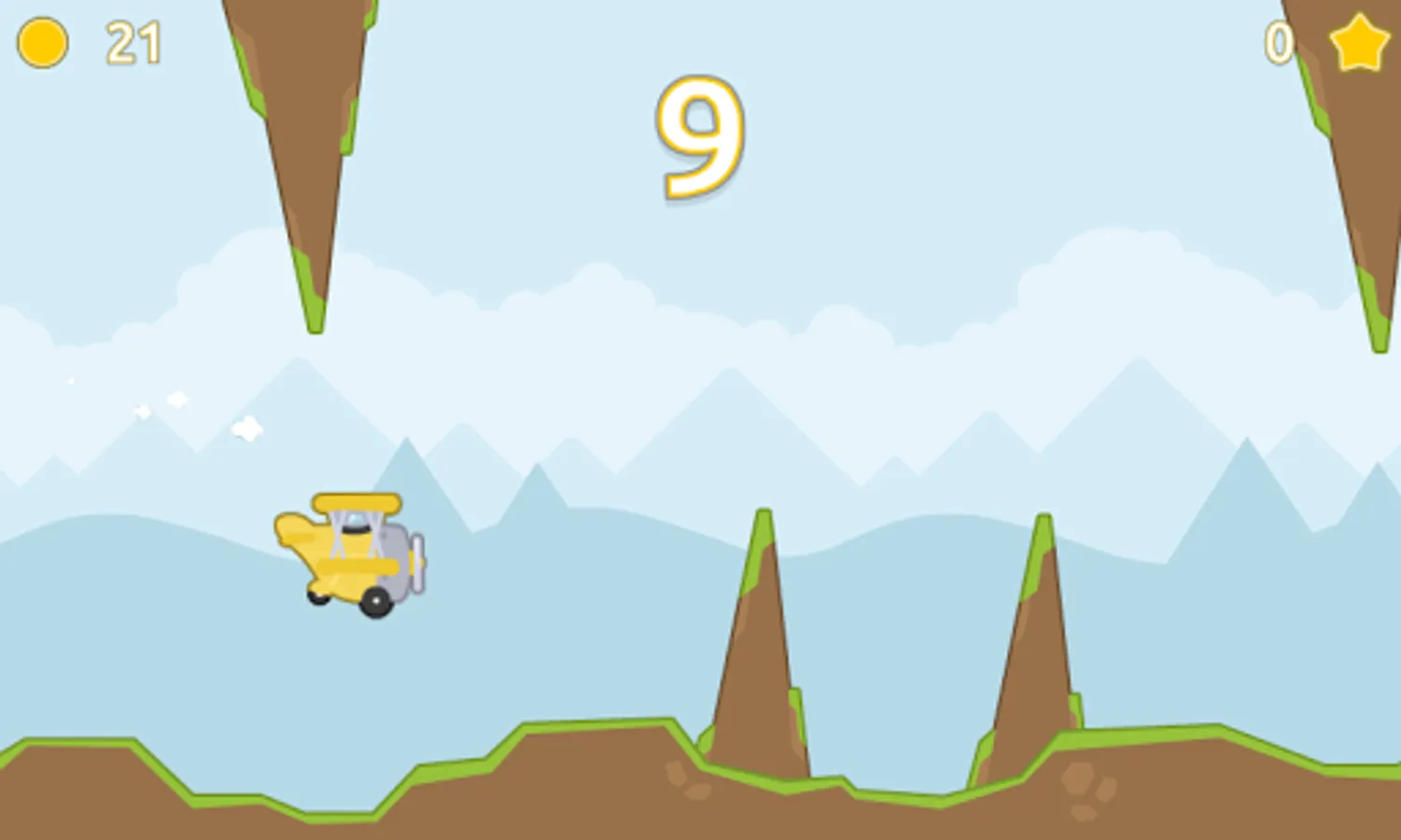 Tap the screen to fly through the rocks and get a nice highscore! Collect as many coins as possible to buy brand-new planes at the shop.