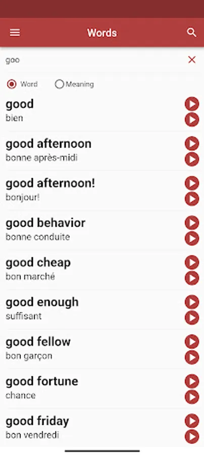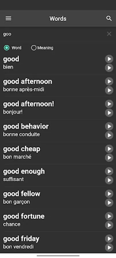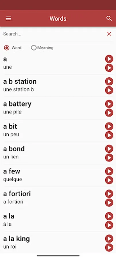 This app contains most popular French words with meanings and pronunciations to improve your language skills.