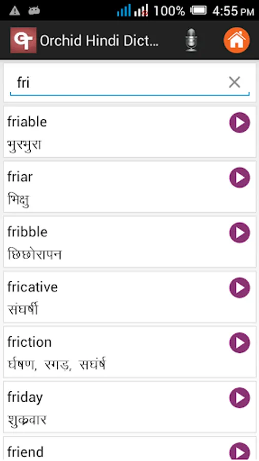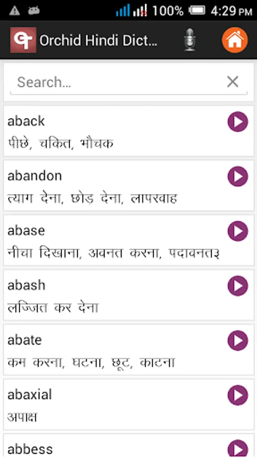 Orchid English Hindi Dictionary Pro is a mobile dictionary contains English words with corresponding Hindi meaning. It provides simple interface to use and offline. We provide the full version for free. It support both Android and iOS platform.
