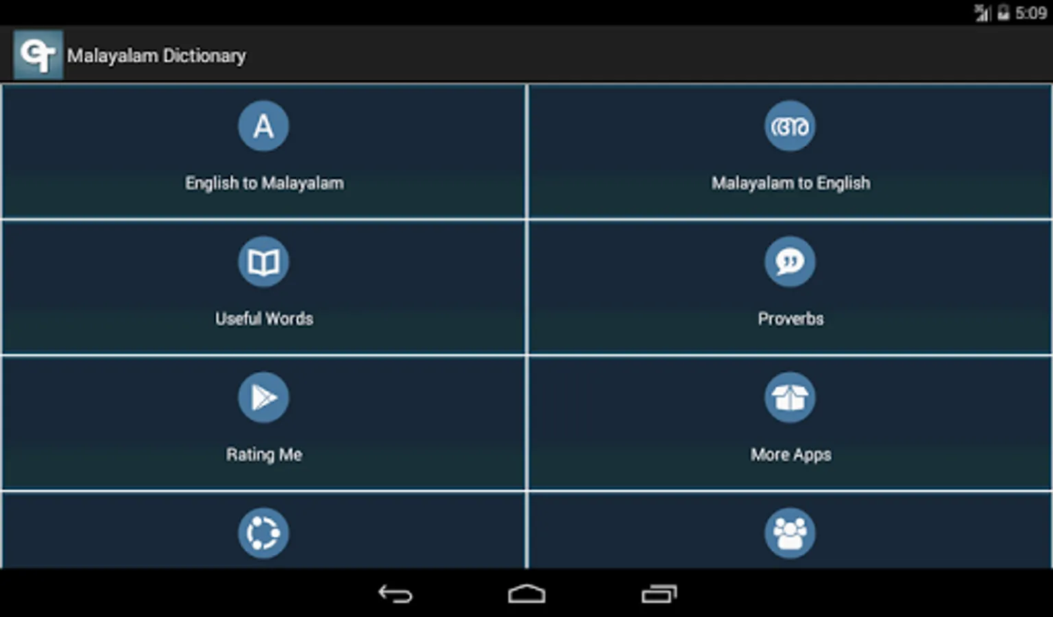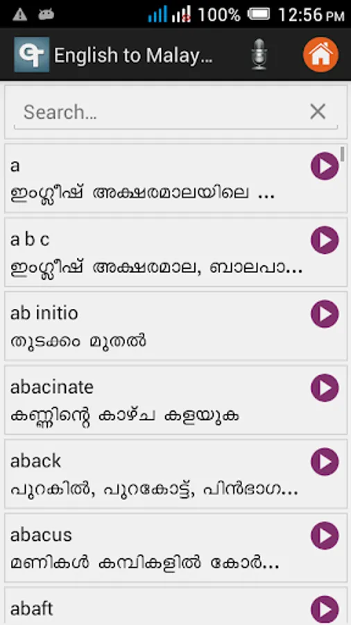 This is the best bilingual English Malayalam dictionary mobile app optimized for your Android device. In this app you can easily search for English and Malayalam word meanings. This Malayalam dictionary app contains Malayalam proverbs and useful words.