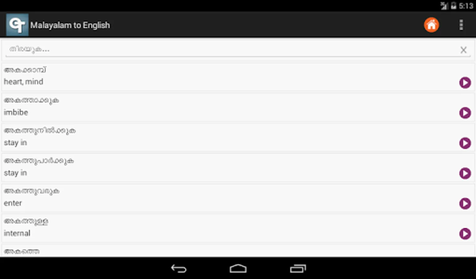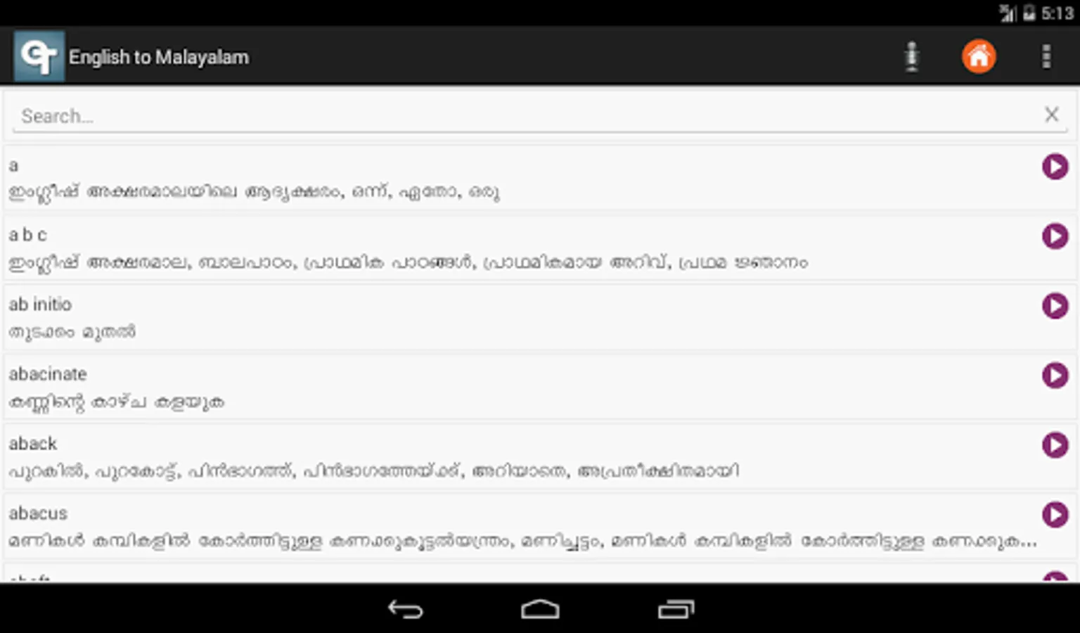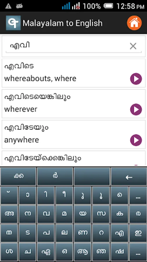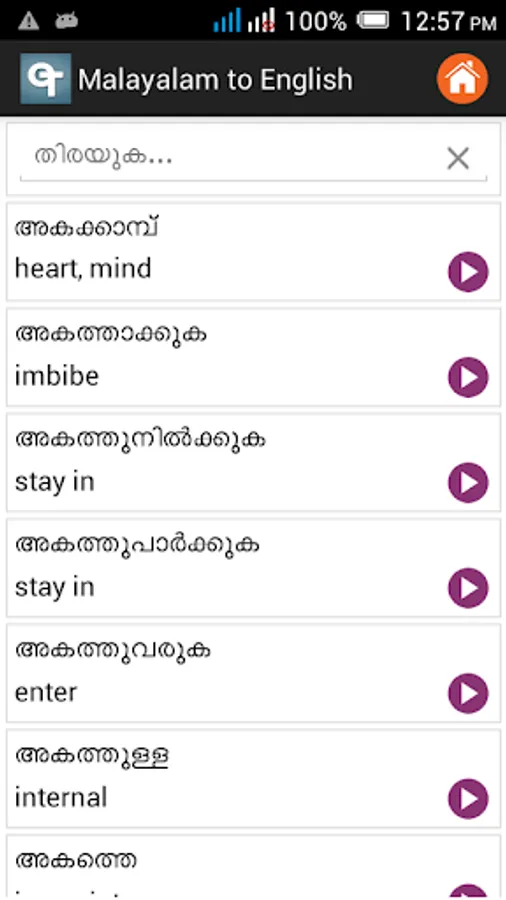 ✓ Malayalam to English dictionary
