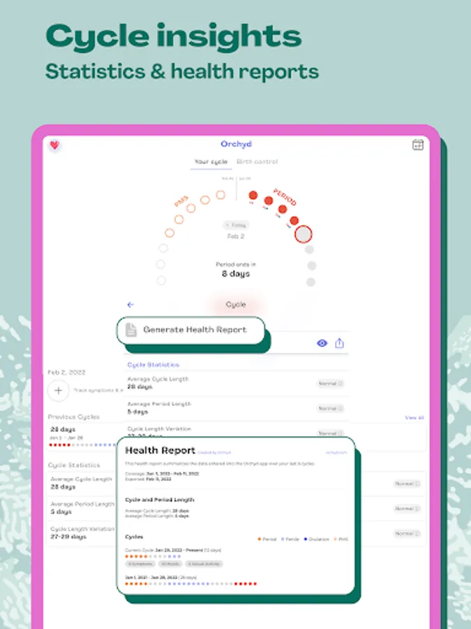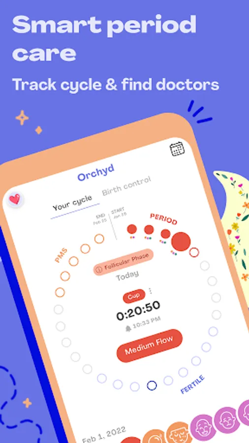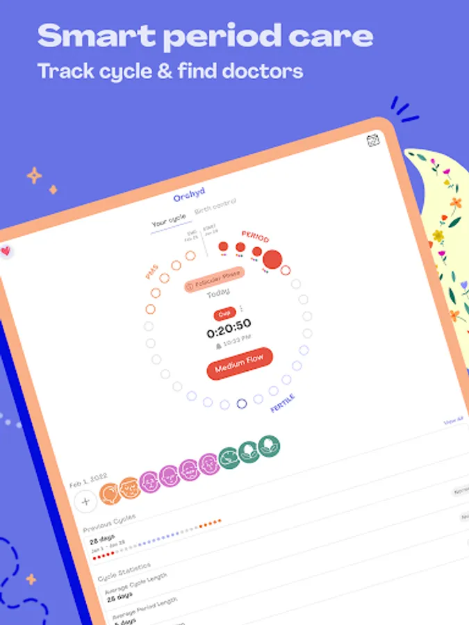 The Orchyd app is your subscription-free period tracker & menstrual healthcare companion. Track your period with a private, free, advanced menstrual period calendar & period planner. Track period symptoms, birth control, & PMS symptoms with Orchyd. Get 24/7 access to a network of board-certified doctors for complete menstrual health resources - all in one app.