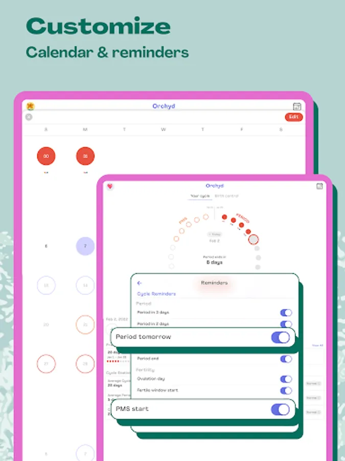 Use Orchyd’s period and ovulation tracker free of ads & view your period calendar, get birth control reminder alerts & more. Orchyd offers advanced birth control and cycle tracker features without needing a subscription.
