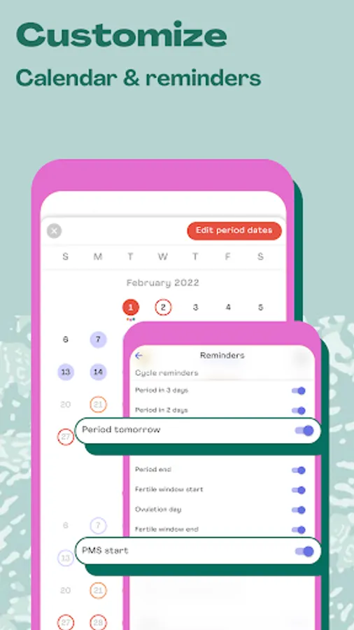 - Improve cycle tracker accuracy by inputting period symptoms into your PMS tracker