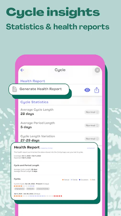 - Get cycle tracker features and ovulation test results with custom period and ovulation tracker settings