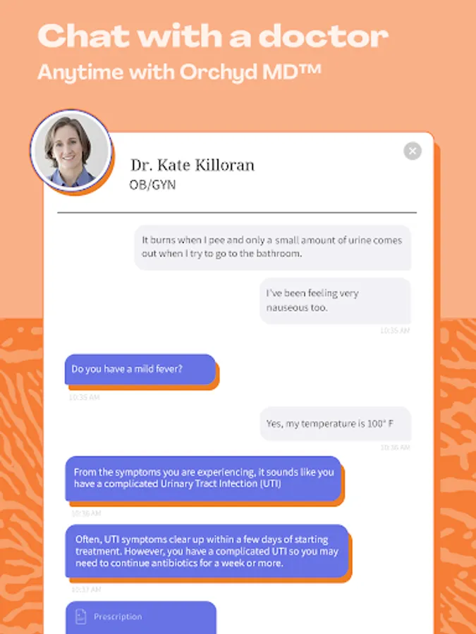 - Telemedicine: Use Orchyd MD™, an on-demand 24/7 doctors network for menstrual health support