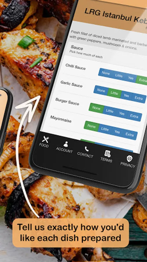 All of our dishes can be customised when you order through the app, for example salad and sauce options, salt and vinegar, and add-ons too.