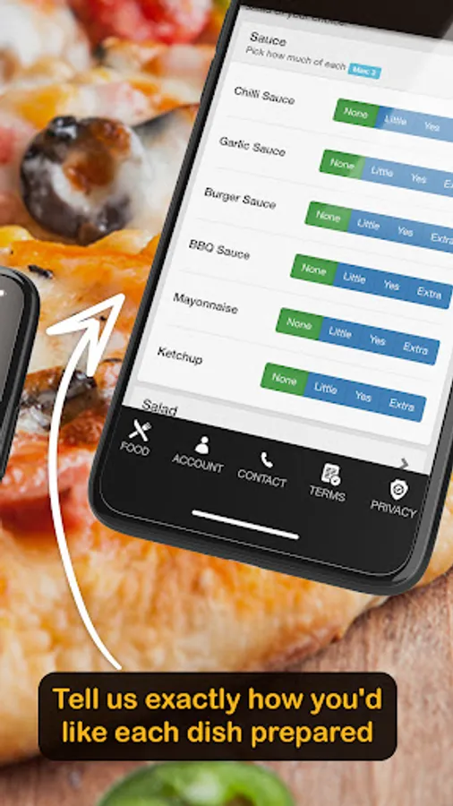 All of our dishes can be customised when you order through the app, for example salad and sauce options, salt and vinegar, and add-ons too.