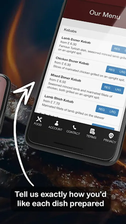 All of our dishes can be customised when you order through the app, for example salad and sauce options, salt and vinegar, and add-ons too.