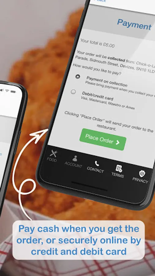 Cash on delivery will send your order to the restaurant instantly.