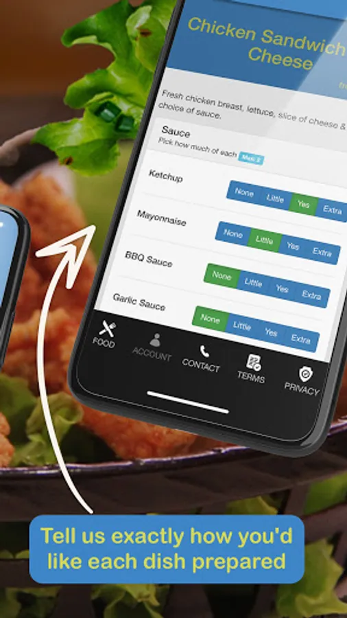 All of our dishes can be customised when you order through the app, for example salad and sauce options, salt and vinegar, and add-ons too.