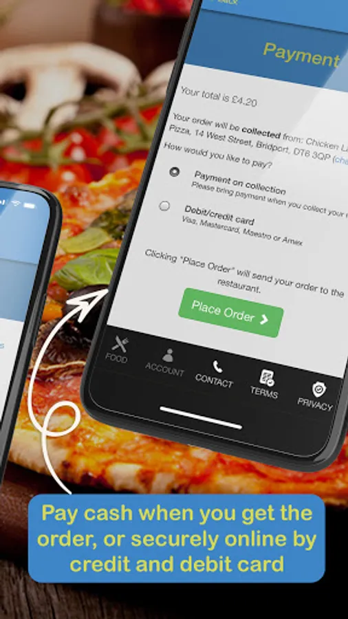 If you have made a card payment but the order has not been sent to the restaurant due to a technical fault, please call 01308 458800 as soon as possible. They know who to contact and can verify your payment quickly.