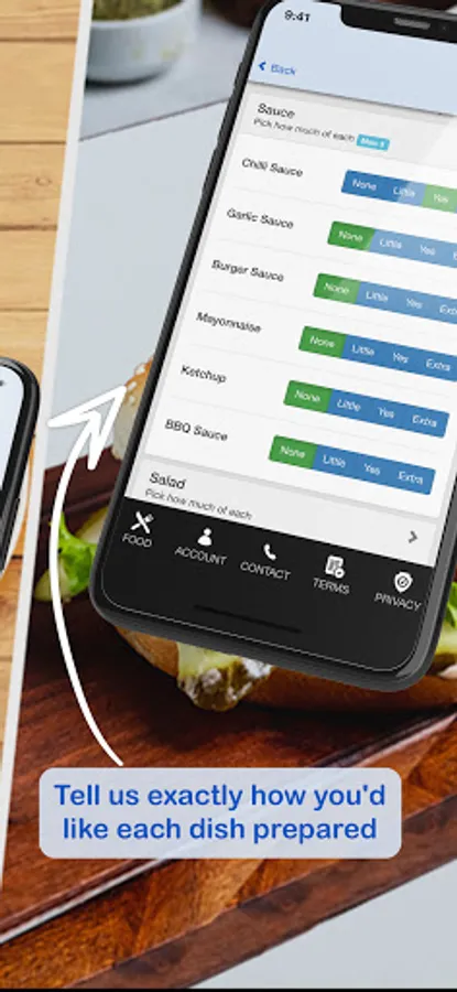 All of our dishes can be customised when you order through the app, for example salad and sauce options, salt and vinegar, and add-ons too.