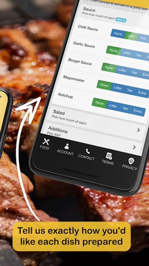 All of our dishes can be customised when you order through the app, for example salad and sauce options, salt and vinegar, and add-ons too.