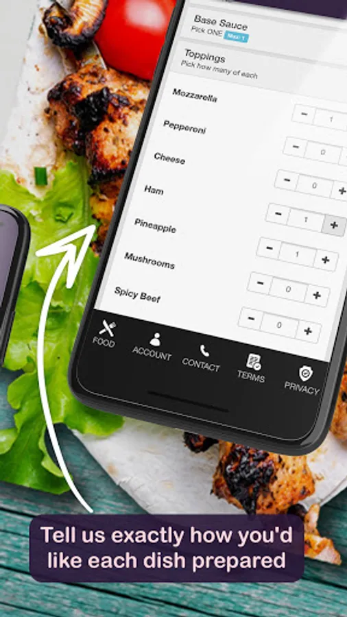 All of our dishes can be customised when you order through the app, for example salad and sauce options, salt and vinegar, and add-ons too.