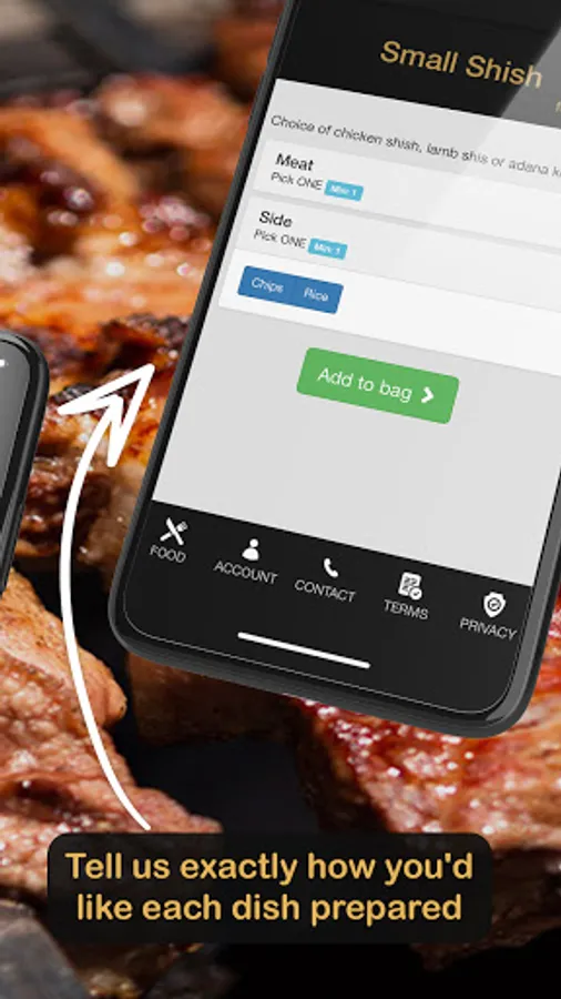 All of our dishes can be customised when you order through the app, for example salad and sauce options, salt and vinegar, and add-ons too.
