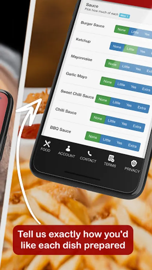 All of our dishes can be customised when you order through the app, for example salad and sauce options, salt and vinegar, and add-ons too.