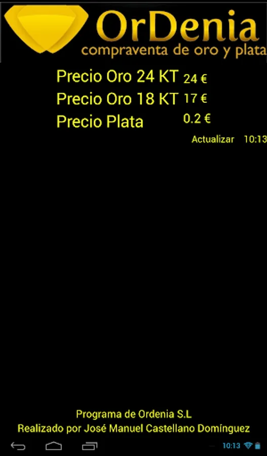With this application you can check at what price we have the price per gram in our stores buy gold in Denia, Javea and Calpe. Simply start the application or use it as a widget so you can use it.