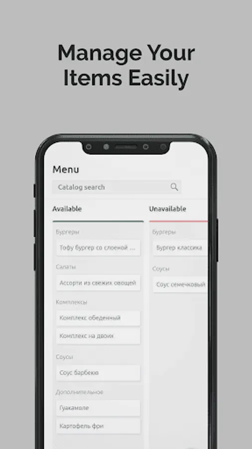 - fill menu catalogue to display actual present items ready for delivery;