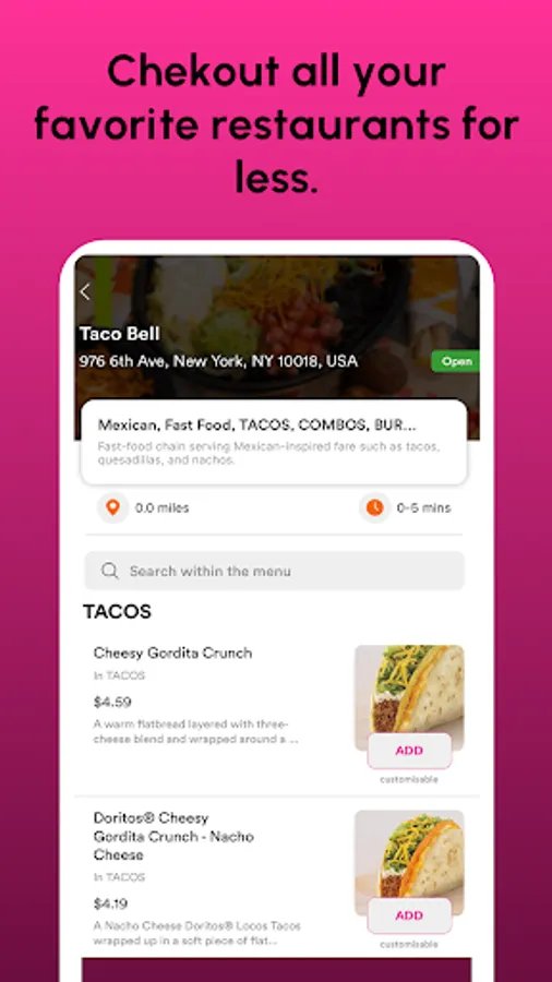 - Save your favorite restaurants and menu items automatically for repeat orders.