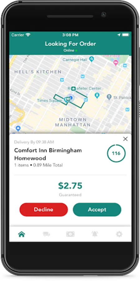 When customers place an order, our app offers the deliveries to drivers, who earn money by picking up and delivering them.