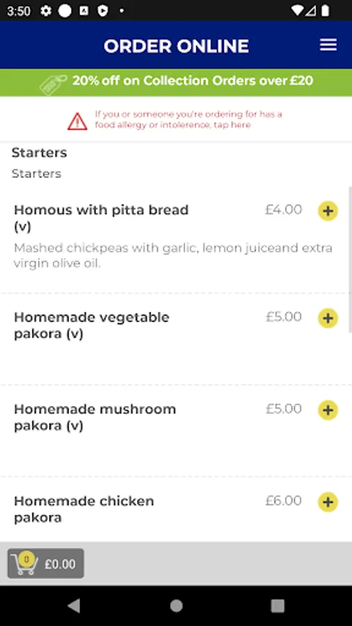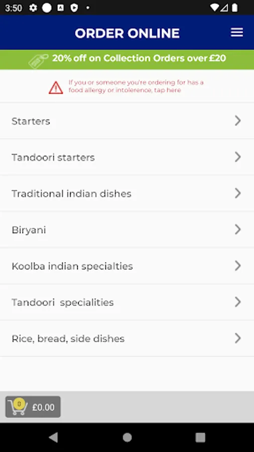 Once the app is downloaded it will enable you to order food directly from our restaurant.