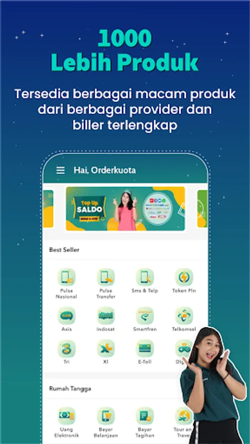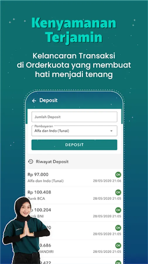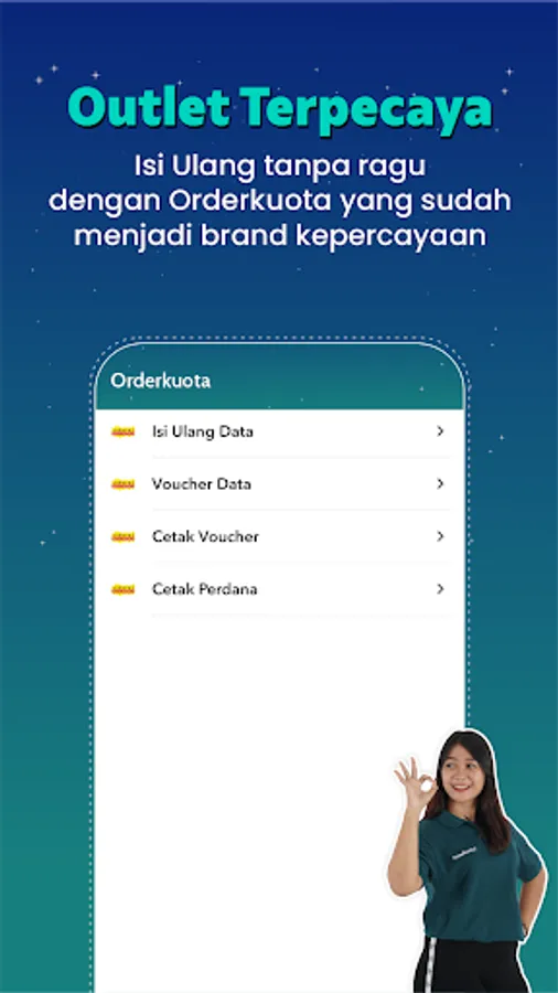Orderkuota is Indonesia's largest Online Outlet, a place to shop for Internet Quota, All Operators Credit, PLN Tokens, Trusted Game Vouchers throughout Indonesia. Since its launch until the end of 2016, the Orderkuota service can be used by everyone, buying and selling Online is more secure and comfortable in Orderkuota.