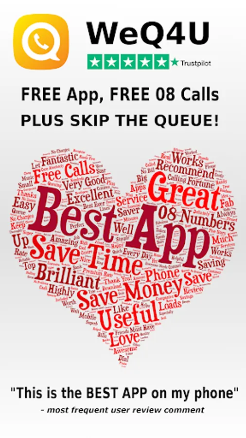 WeQ4U puts you through to Call Centres without the queue and gives you FREE CALLS on MOST 08 NUMBERS.