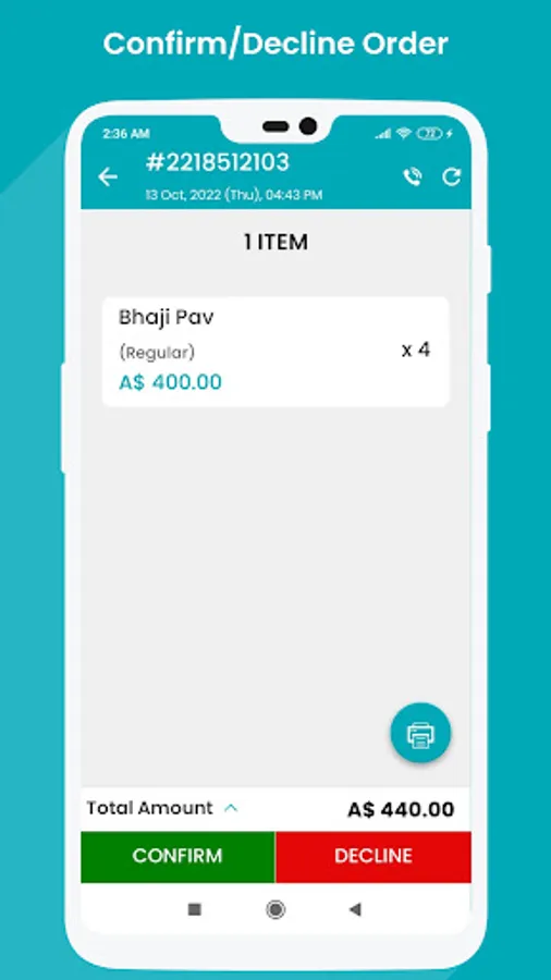 Orderoo Store APP helps restaurant/store owners to manage their incoming business orders with just a few clicks from the app. It allows to “Accept” or “Reject” any new orders sending the confirmation to your customer by email and push notification.