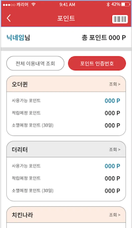 Order Queen members can check the earned points and transaction details, and check the authentication number to use the points.