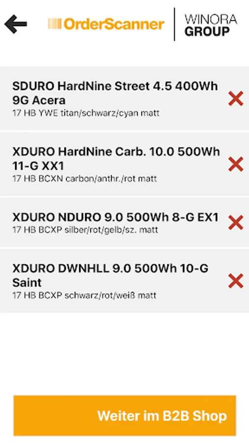 After you have installed and signed in with your B2B dates, you can start immediately: All new products and displayed bikes have an individual QR code. You only have to scan the QR code via the OrderScanner app and add the selected bike to the watch list. The OrderScanner app automatically synchronizes your watch list with the OrderCenter, the new online order platfrom of Winora Group. In the OrderCenter, you can review your watch list, all bike details, conditions and delivery dates and complete your order.