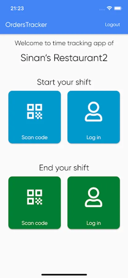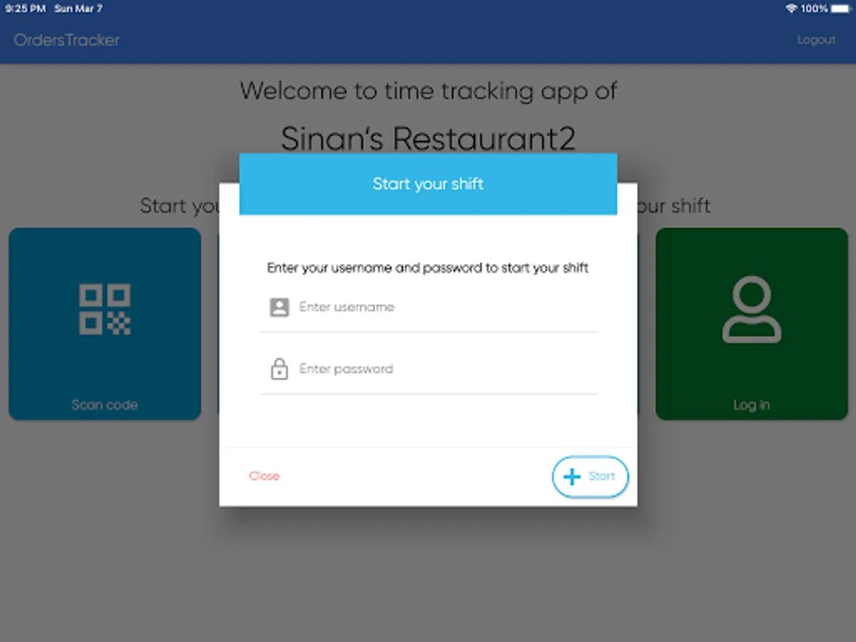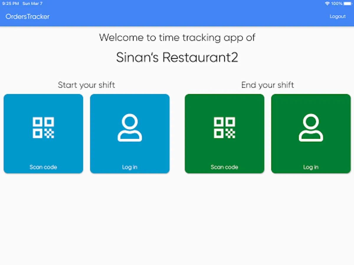 The Time Tracking app allows your employees to record their working hours. You can create a QR code for each of your employees using the main OrdersTracker app. Your employees can easily record their shift start and end time by scanning the QR code created for them. If scanning the QR code does not work properly, your employees can record their working time by logging into the system with their account.