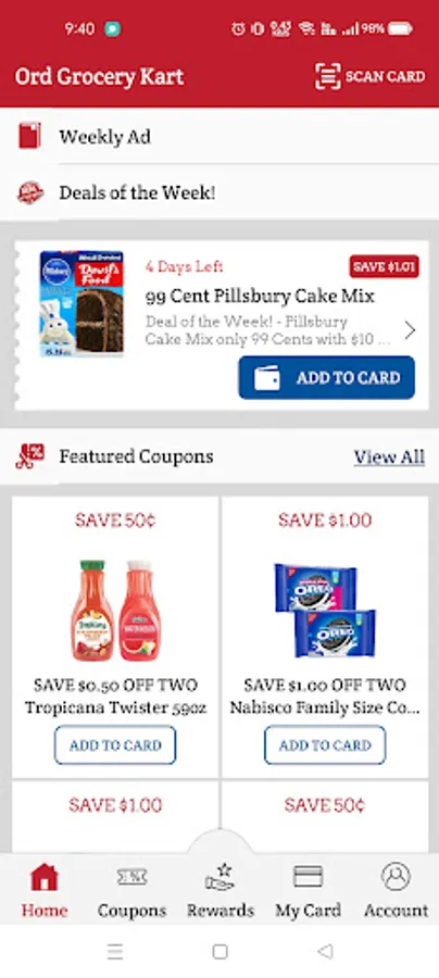 Claim as many coupons as you want with one simple scan! No more searching through mailers or printing out emails, Ord Grocery Kart is bringing rewards right to your mobile device!