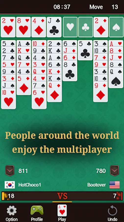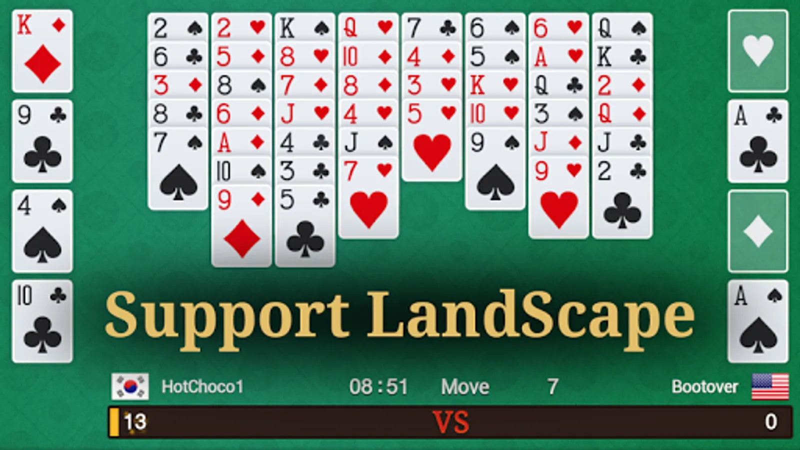 ● Support real-time multiplayer with people around the world. See more fight to see who solve the FreeCell.