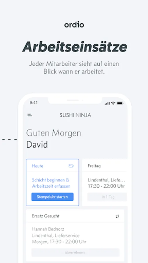 Automate daily processes in your restaurant with Ordio Workflow Automation. In addition to extensive personnel administration and personnel deployment planning, you can use Ordio Workspaces to create duty rosters, record working times, file documents for your employees and much more.