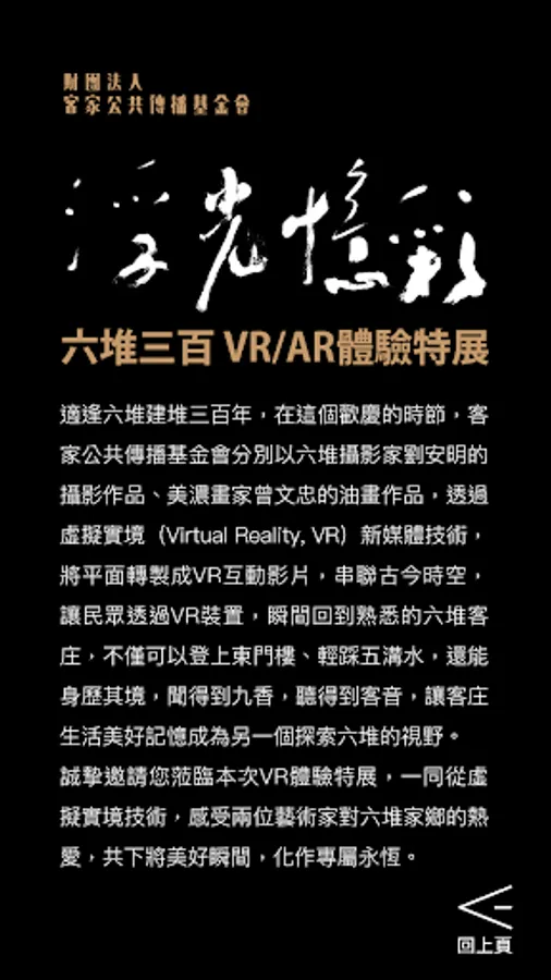 It coincides with the 300th anniversary of Liudui’s construction. In this festive season, the Hakka Public Communication Foundation uses Liu Anming’s photographic works and Meinong painter Zeng Wenzhong’s oil paintings through Virtual Reality (Virtual Reality, VR) new media technology transforms the plane into a VR/AR interactive video, connecting ancient and modern time and space, allowing the public to instantly return to the familiar Liudui Kezhuang through the VR device. You can also experience the environment, smell the nine fragrances, and hear the guest voice, so that the beautiful memories of Hae Zhuang's life become another perspective to explore Liudui.