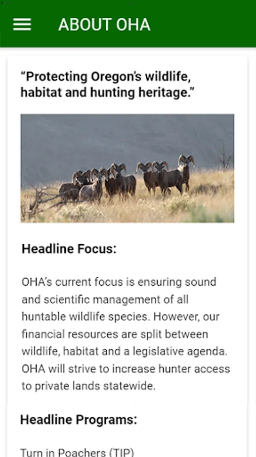 Oregon Hunters Association's current focus is ensuring sound and scientific management of all huntable wildlife species. However, our financial resources are split between wildlife, habitat and a legislative agenda. OHA will strive to increase hunter access to private lands statewide.