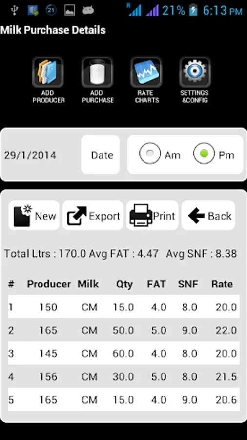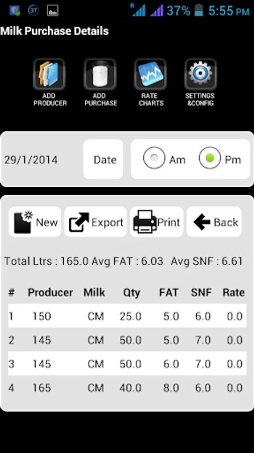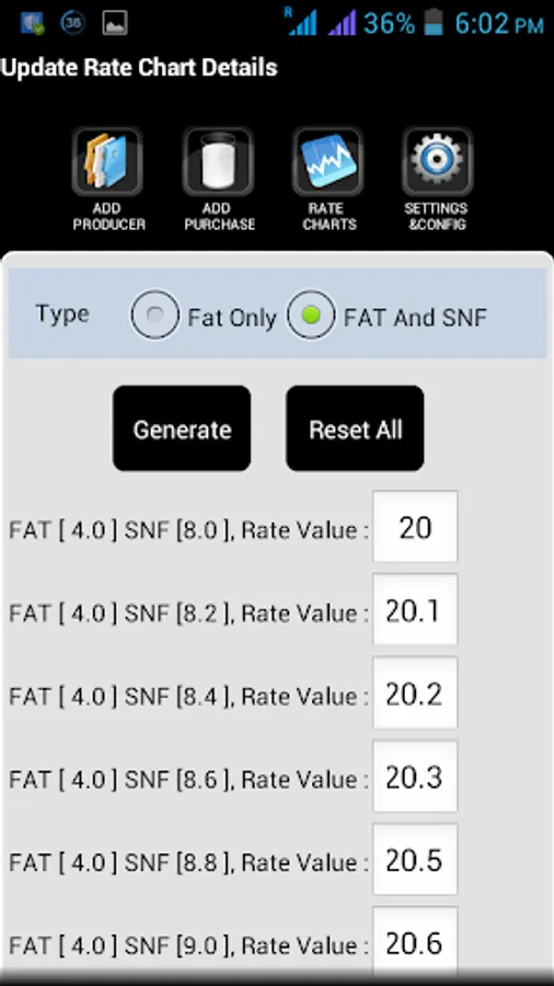 Daily milk procurement entry with Morning & Evening Shift SNF/FAT or with fixed rate chart.